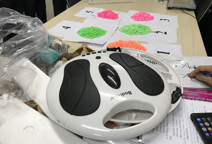 Qua kiểm tra, bốn kiện hàng chứa nhiều thiết bị điện tử massage chân, thùng carton giấy, túi treo, kẹo gum chứa ma túy ép chặt. Tổng cộng khoảng 9kg thuốc lắc, trị giá hơn 20 tỷ đồng. Chủ số hàng này chưa được xác định.