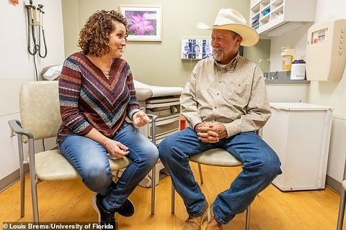 Sau khi hiến thận và tuyến tụy của chồng cho ông Jeff, gia đình bà Terri và ông trở nên thân thiết. Ảnh: Louis Brems/University of Florida.