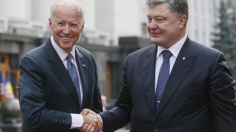 Cựu Tổng thống Ukraine Petro Poroshenko (phải) và cựu Phó Tổng thống Mỹ Joe Biden (trái). (Ảnh qua Reuters)