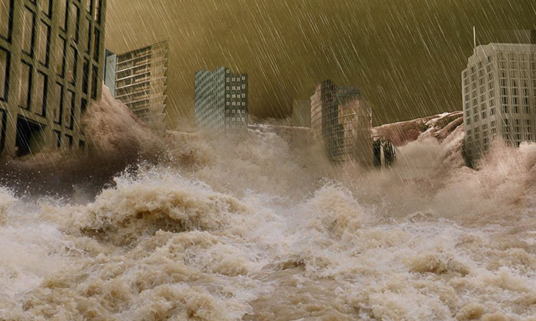 Phồn hoa thị, biến uông dương. Cao lâu các, biến nê cương": miêu tả cảnh tượng thê thảm sau khi đập Tam Hiệp bị vỡ. Tất cả đô thị phồn hoa đều bị vùi trong bùn lầy. (Ảnh: Shutterstock)