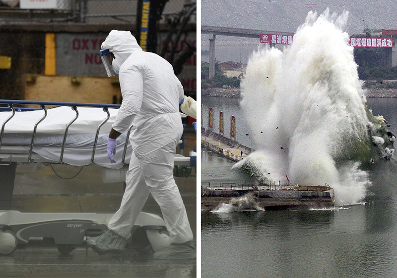Cùng một câu nhưng có hai lối diễn giải khác nhau: một bên lư giải rằng lời tiên tri nói về dịch bệnh nghiêm trọng tại Mỹ, phía c̣n lại tin rằng đó là lời tiên tri về đập Tam Hiệp. (Ảnh tổng hợp)