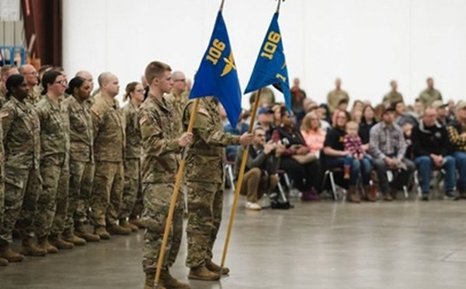 Vào ngày 12/3/2020, các gia đ́nh và bạn bè của họ đă tập trung tại một kho vũ khí của Lực lượng Vệ binh Quốc gia Decatur bang Illinois để nói lời tạm biệt với lính canh và phụ nữ đang vận chuyển hành lư ra ngoài.