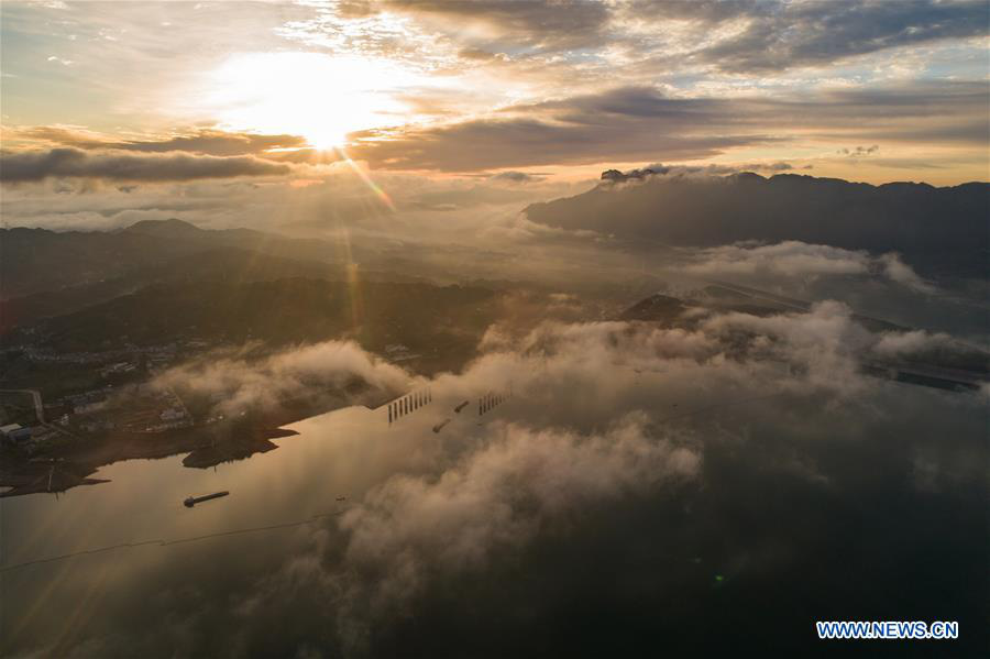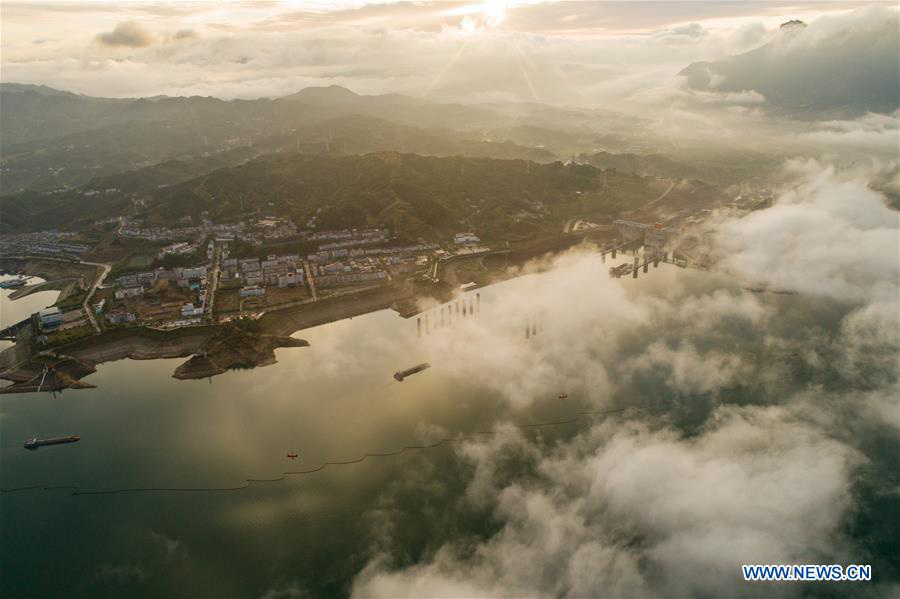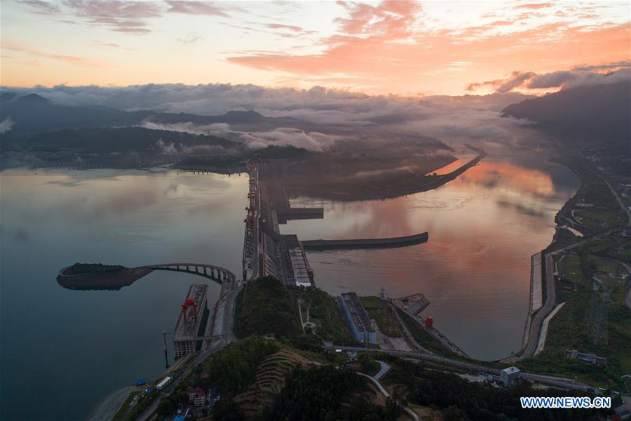 Mãi đến năm 1992, Thủ tướng Trung Quốc Lý Bằng mới thuyết phục được Quốc hội Trung Quốc thông qua dự án, nhưng cũng có đến gần 1/3 đại biểu phản đối hoặc không bỏ phiếu - điều ít thấy trên chính trường Trung Quốc. Trong ảnh là hồ chứa đập Tam Hiệp sáng sớm sau cơn mưa hôm 10/5/2020.