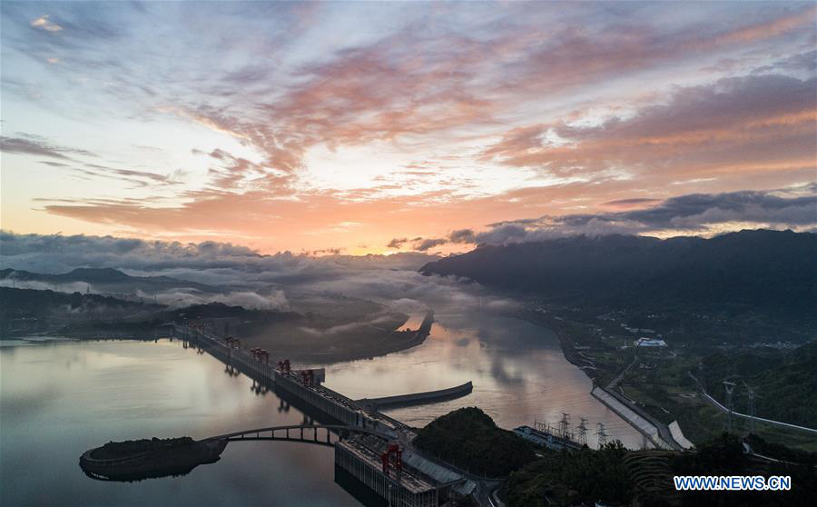 Ý tưởng xây dựng con đập lớn nhất hành tinh trên sông Dương Tử được nhà lãnh đạo Tôn Trung Sơn đưa ra vào năm 1919 để không chỉ phát điện và giúp kiểm soát lũ lụt trên sông Dương Tử, mà còn thể hiện sức mạnh mới của Trung Quốc. Tuy nhiên, ý tưởng này đã bị gác lại tới gần 40 năm vì nhiều tranh cãi. Trong ảnh là toàn cảnh đập Tam Hiệp nhìn từ trên không sáng sớm ngày 10/5/2020.