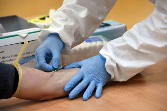 Một bệnh nhân được lấy máu xét nghiệm kháng thể virus corona chủng mới (SARS-CoV-2) - Ảnh: GETTY IMAGES
