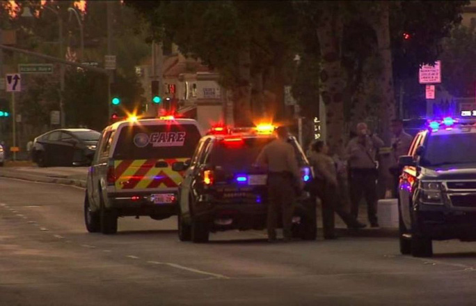 Cảnh sát tập trung tại hiện trường vụ cướp xe khiến bé gái 13 tuổi thiệt mạng. Ảnh: KABC