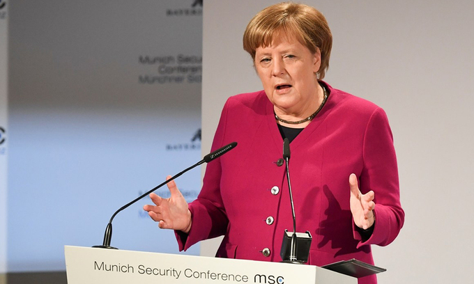 Thủ tướng Angela Merkel phát biểu tại Hội nghị An ninh Munich hồi tháng 2/2019. Ảnh: Politico.