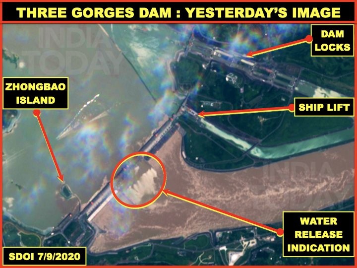 Tuy nhiên, Vinayak Bhat, cựu tướng quân đội Ấn Độ - chuyên gia phân tích ảnh vệ tinh với hơn 20 năm kinh nghiệm, hôm 10/7 chia sẻ với tờ India Today một bức ảnh vệ tinh cho thấy nước được xả từ ít nhất 5 cổng xả lớn và 5 cổng xả nhỏ của đập Tam Hiệp vào ngày 24/6 - 5 ngày trước khi Trung Quốc tuyên bố xả lũ ở đập thủy điện lớn nhất hành tinh. Trạm giám sát thủy văn thành phố Trùng Khánh hôm 22/6 đưa ra cảnh báo lũ cấp độ đỏ (cao nhất) lần đầu tiên sau 80 năm trên sông Kỳ Giang.