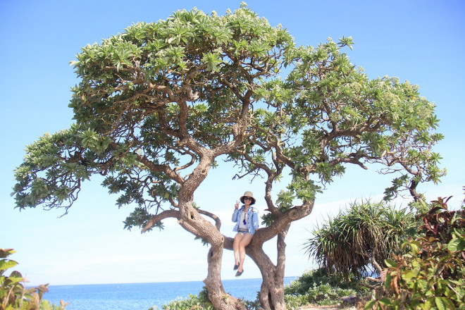 Chụp hình bên cây phong ba cô đơn ở đảo Bé- ảnh N.N