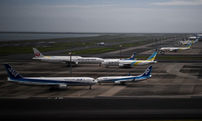 Máy bay trên đường băng sân bay Haneda, Nhật Bản ngày 11/7. Ảnh: AFP.