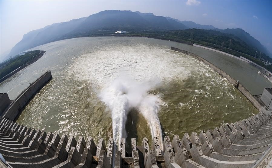 Đập Tam Hiệp mở 2 cổng xả nước (ảnh: Xinhua)