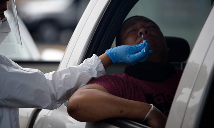 Một người đàn ông được lấy mẫu xét nghiệm tại thành phố Houston, Texas, Mỹ, hôm 25/6. Ảnh: AFP.