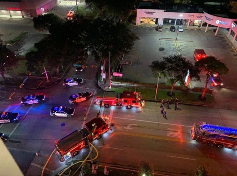 Cảnh sát và xe cứu hỏa tập trung ngoài Tổng lãnh sự quán Trung Quốc ở Houston (ảnh: SCMP)