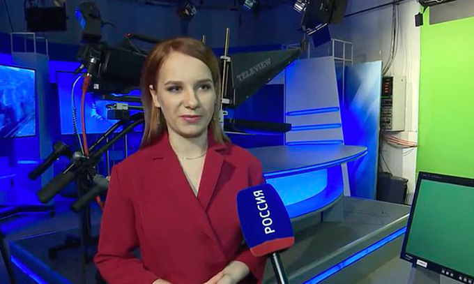 Nữ y tá Nadezhda Zhukova dẫn chương trình tại đài truyền hình vùng Tula. Ảnh: Vesti Tula