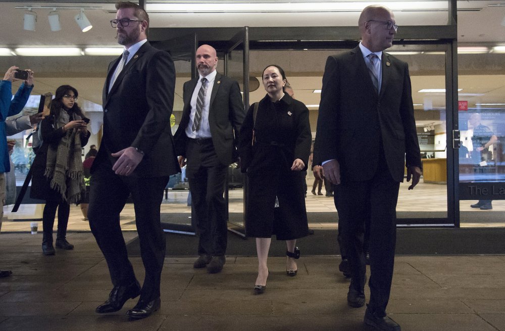 Bà Mạnh Vãn Châu rời phòng xử án tại Toà tối cao bang British Columbia ở Vancouver hồi tháng 1 năm nay. Ảnh: AP.