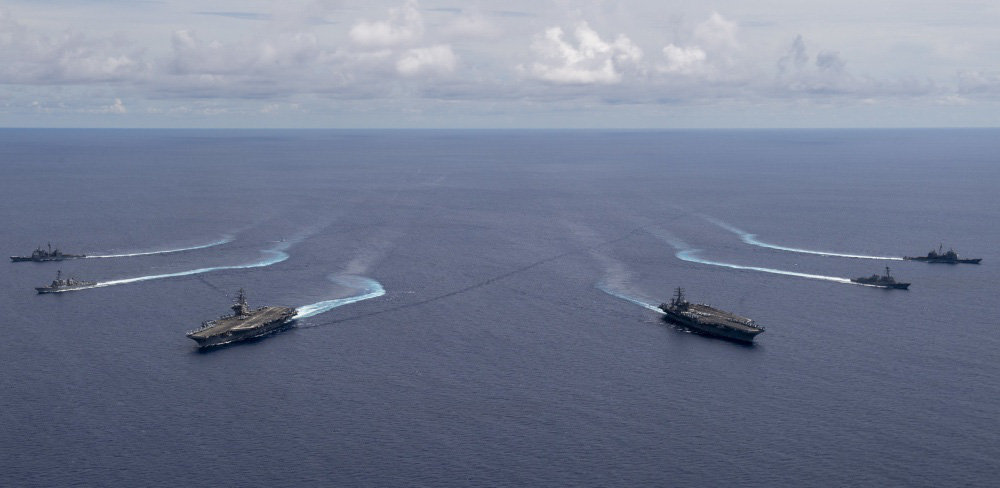 Tàu sân bay Mỹ tập trận ở Biển Đông (ảnh: Reuters)