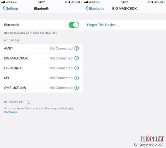 Để quên các thiết bị ngoại vi đã kết nối trước đó, bạn hãy vào Settings (cài đặt) - Bluetooth, bấm vào biểu tượng chữ “i” tại thiết bị đó và chọn Forget this device (quên thiết bị này). Sau đó, người dùng chỉ cần quay ngược lại mục trước đó và chọn thiết bị cần kết nối.