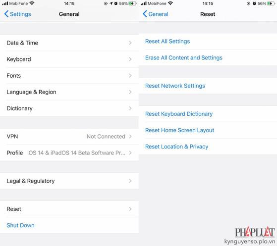 Lưu ý, việc đặt lại cài đặt mạng sẽ không ảnh hưởng đến dữ liệu đang có trên iPhone, iPad. Để bắt đầu, bạn hãy vào Settings (cài đặt) - General (cài đặt chung) - Reset (đặt lại) - Reset network settings (đặt lại kết nối mạng), nhập mật khẩu khi được yêu cầu.