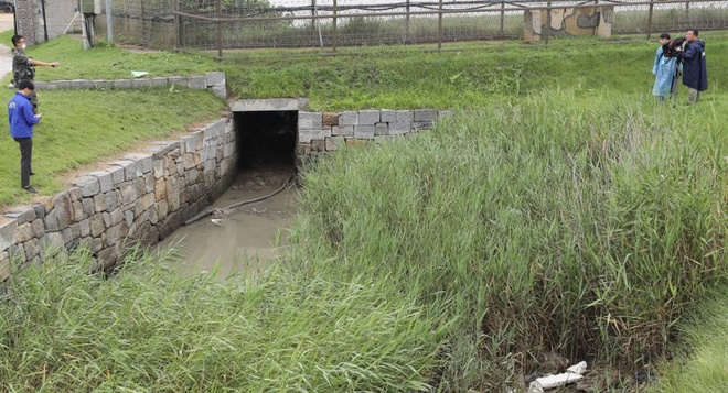 Cống thoát nước người đàn ông họ Kim sử dụng để vượt biên trở lại Triều Tiên ngày 18/7. Ảnh: Yonhap.
