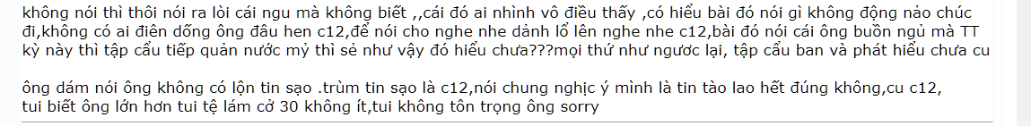 Tui nói thật sự trong forum này vài ACE cũng từng tranh cãi và chửi tui . Nhưng tui không thù hận hoặc trả thù họ gì hết .