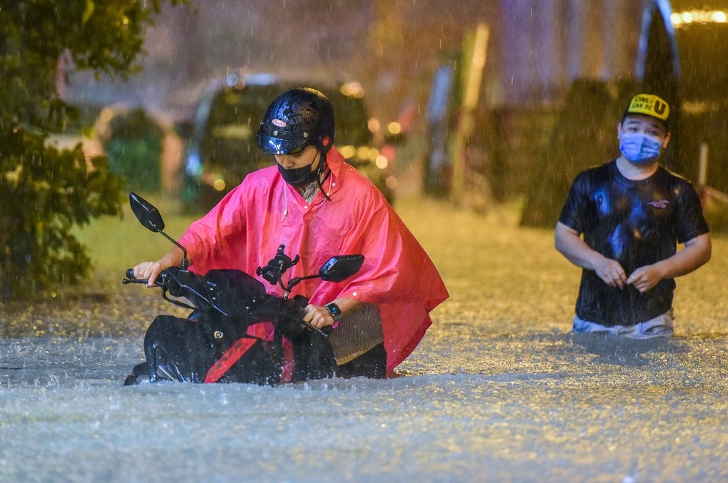 Trận mưa tối 6/8 được ghi nhận là lớn nhất từ đầu năm đến nay khiến nhiều tuyến đường như Nguyễn Hữu Cảnh, Ung Văn Khiêm (quận Bình Thạnh); Tô Ngọc Vân, Võ Văn Ngân (quận Thủ Đức)... ngập lút bánh xe.