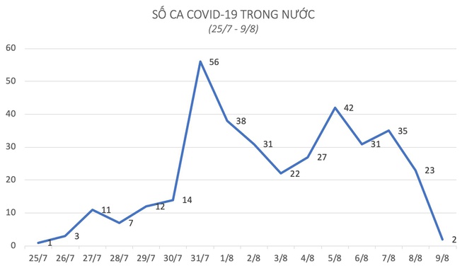 Việt Nam ghi nhận thêm bệnh nhân mắc Covid-19 mới trong sáng 9/8. Đồ họa: Quốc Toàn.