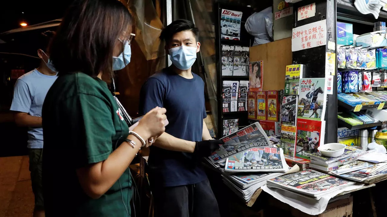 Một sạp báo ở Hồng Kông ngày 11/08/2020. Dân Hồng Kông xếp hàng mua nhật báo Apple Daily để ủng hộ nhà tỷ phú Lê Trí Anh. REUTERS - TYRONE SIU