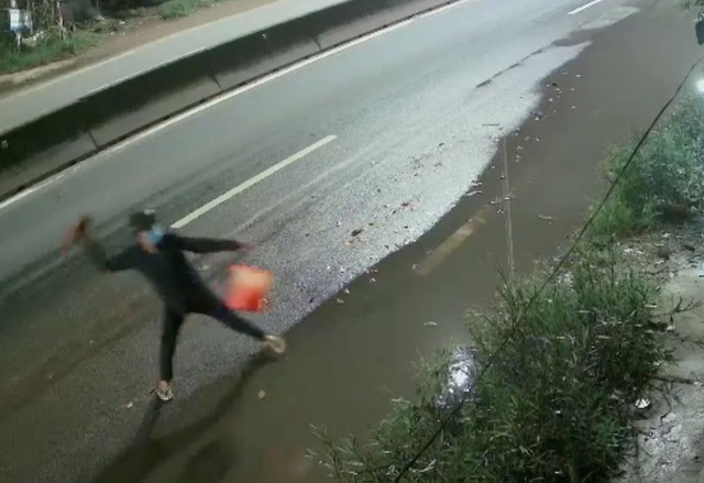 Đối tượng ném gạch vào gia đình ông T. vào tối 15/8. Ảnh cắt từ clip