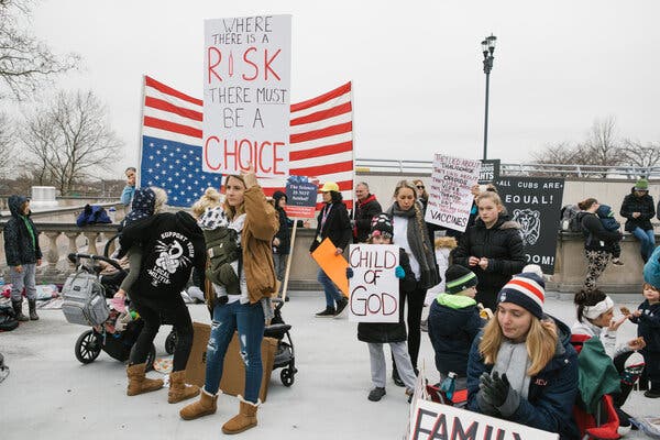 Một nhóm biểu tình kêu gọi chống tiêm vắc xin ở Mỹ (ảnh: NY Times)