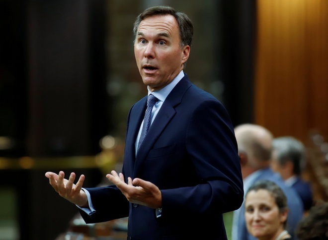 Bộ trưởng Tài chính Bill Morneau tại buổi điều trần về chính sách tài khóa ở quốc hội Canada ngày 8/7. Ảnh: Reuters.