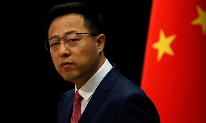 Phát ngôn viên Bộ Ngoại giao Trung Quốc Triệu Lập Kiên tại cuộc họp báo ở Bắc Kinh hồi tháng 4. Ảnh: Reuters.