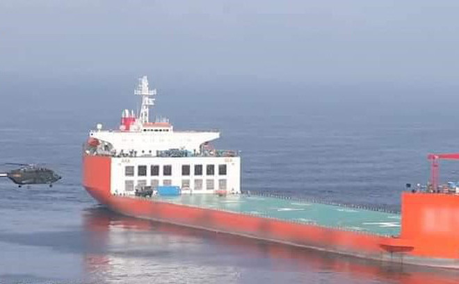 Giờ đây, hạm đội Trung Quốc đã thể hiện sự sáng tạo— hoặc sự tuyệt vọng tương tự. Một tàu hàng thương mại hạng nặng treo cờ Hong Kong gần đây đã tham gia hỗ trợ một cuộc tập trận của hải quân Trung Quốc, hoạt động với vai trò một căn cứ cho ít nhất hai trực thăng lục quân.