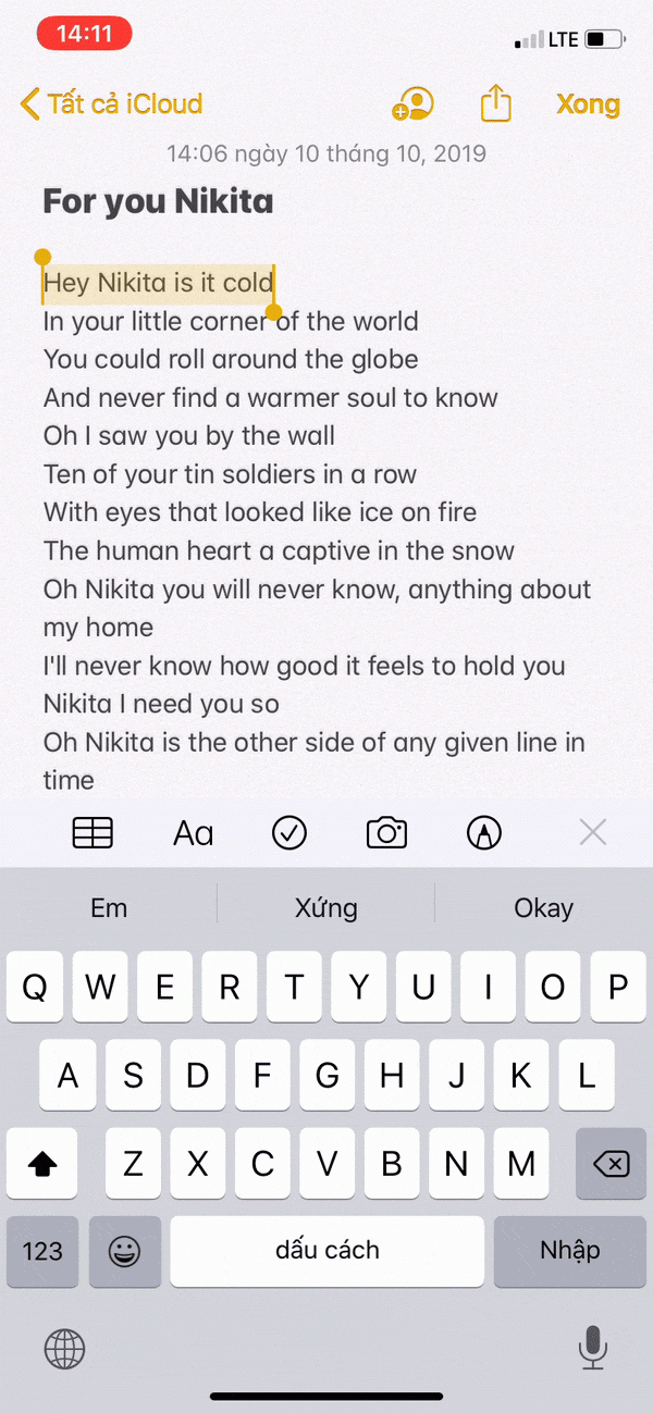 Khi nhập liệu nội dung trên IOS, người dùng có thể di chuyển nhanh con trỏ trên màn hình để quay lại chỉnh sửa bất kỳ chỗ nào. Chỉ cần giữ vào con trỏ trên màn hình thiết bị rồi kéo đến vị trí cần sửa.