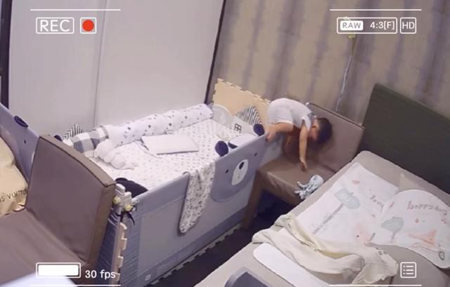 Ông bố đi tắm nên đặt con trên giường, xung quanh có lắp rào chắn - Ảnh: Sohu