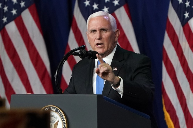 Phó tổng thống Mike Pence phát biểu trong đêm thứ 3 của RNC. Ảnh: EPA.