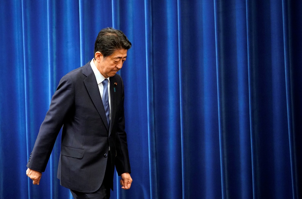 Thủ tướng Shinzo Abe rời cuộc họp báo sau khi công bố quyết định từ chức. Ảnh: Reuters.