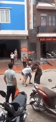Mặc dù được người ngoài can ngăn nhưng người này vẫn cố dùng chân đạp vào thân thể người vợ để bảo vệ cô nhân tình.