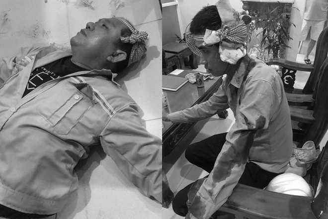 Ông Phương (áo xanh, ảnh trên) và ông Chánh bị đánh trọng thương phải nhập viện.