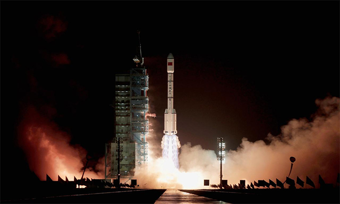 Tên lửa Trường Chinh 2F rời bệ phóng vào tháng 9/2011. Ảnh: NY Times.