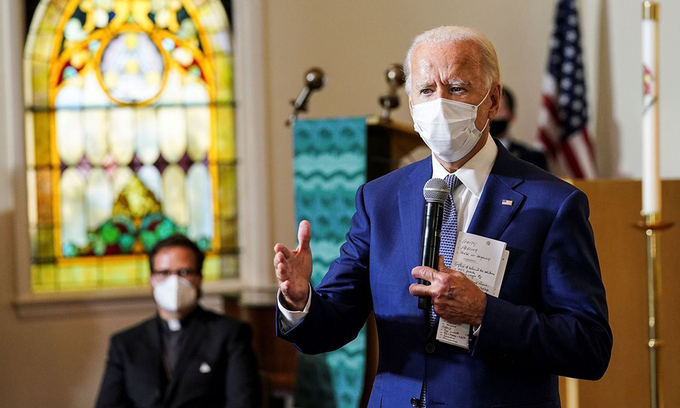 Ứng viên Dân chủ Joe Biden (phải) phát biểu tại nhà thờ Grace Lutheran, ở Kenosha, bang Wisconsin hôm 3/9. Ảnh: Reuters.