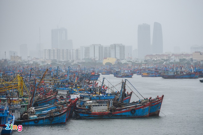 Ngư dân ở Đà Nẵng hối hả trước giờ cảng cá đóng cửa, tàu thuyền cũng được neo đậu an toàn. Ảnh: Duy Hiệu.