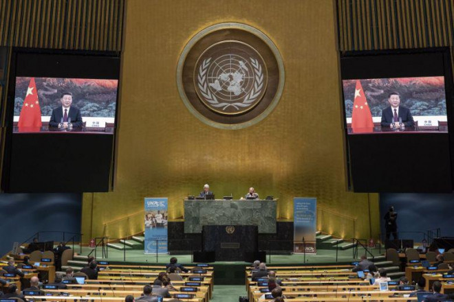 Trong bài phát biểu tại ĐHĐ LHQ cùng ngày, Chủ tịch Trung Quốc Tập Cận Bình khẳng định Bắc Kinh "không có ý định chiến tranh lạnh hay chiến tranh nóng với bất cứ quốc gia nào".