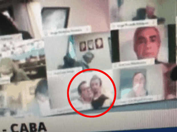 Nghị sĩ Juan Emilio Ameri sống tại phía đông bắc Argentina đã cùng các chính trị gia khác tham gia cuộc họp Quốc hội trực tuyến tại nhà thông qua ứng dụng Zoom, khi ông này bỗng ôm một người phụ nữ tóc vàng và kéo cô nàng ngồi xuống đùi mình, vạch áo người này ra và... hôn lấy hôn để.