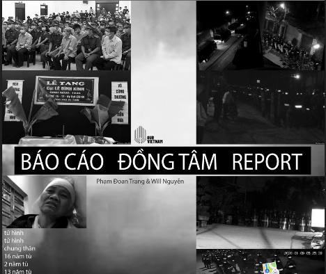 Tin từ Việt Nam: Hai nhà hoạt động nhân quyền Phạm Đoan Trang là Will Nguyễn đã công bố báo cáo đầy đủ về sự kiện Đồng Tâm, trong đó bao gồm vụ tấn công của hàng nghìn cảnh sát cộng sản vào xã Đồng Tâm trong sáng sớm ngày 09/1 và phiên toà xét xử 29 người dân oan bị bắt trong cuộc tấn công.