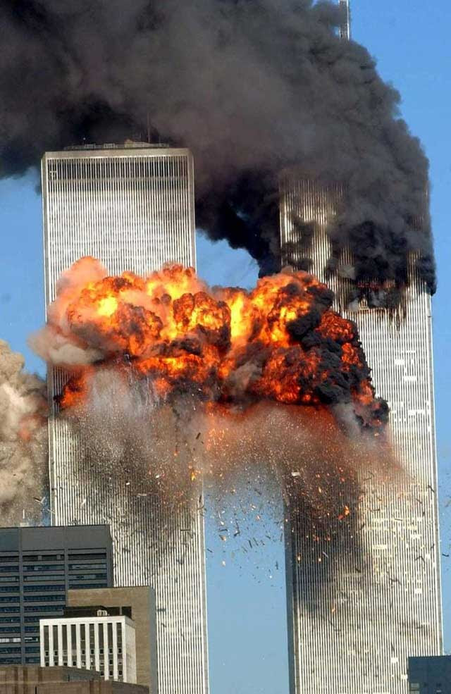 Hai tòa tháp nổ tung sau khi bị 2 máy bay thương mại đâm trúng....Ngày 11-09-2001.