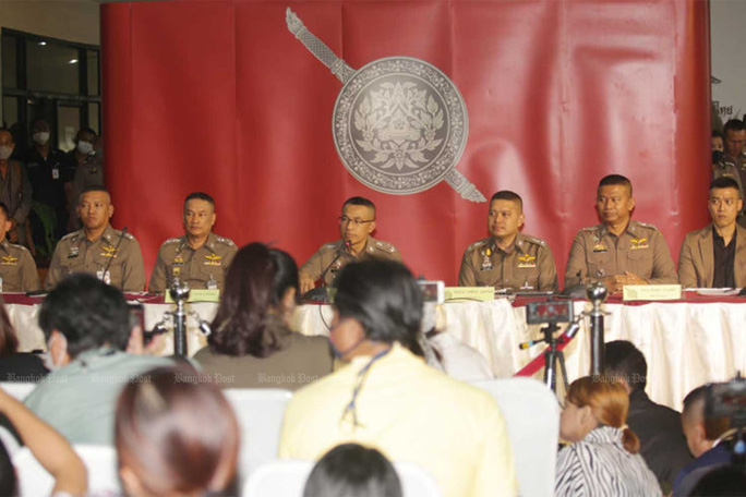 Cảnh sát trưởng Thái Lan Suwat Jangyodsuk (giữa) tại cuộc họp báo hôm 2-10. Ảnh: The Bangkok Post
