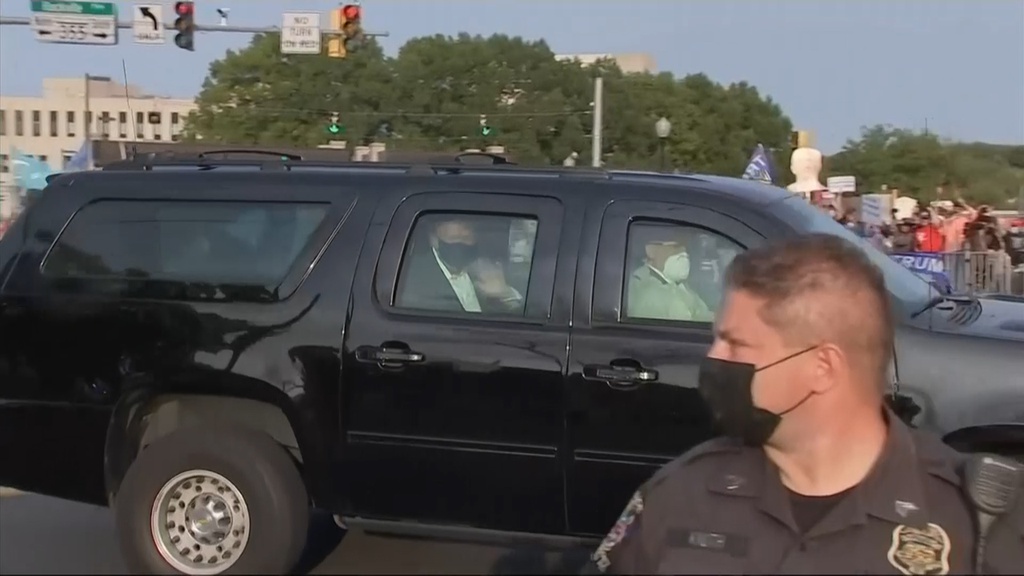 Trái lại, phát ngôn viên Nhà Trắng Judd Deere đứng ra bảo vệ hành động của tổng thống. Ông giải thích với các phóng viên: “Các biện pháp phòng ngừa thích hợp đã được áp dụng nhằm bảo vệ tổng thống và những người ủng hộ”. Ông Deere nói đội ngũ y tế đã nhận xét việc Tổng thống Trump rời bệnh viện không gây ra nguy cơ nên mới cho phép tiến hành.
