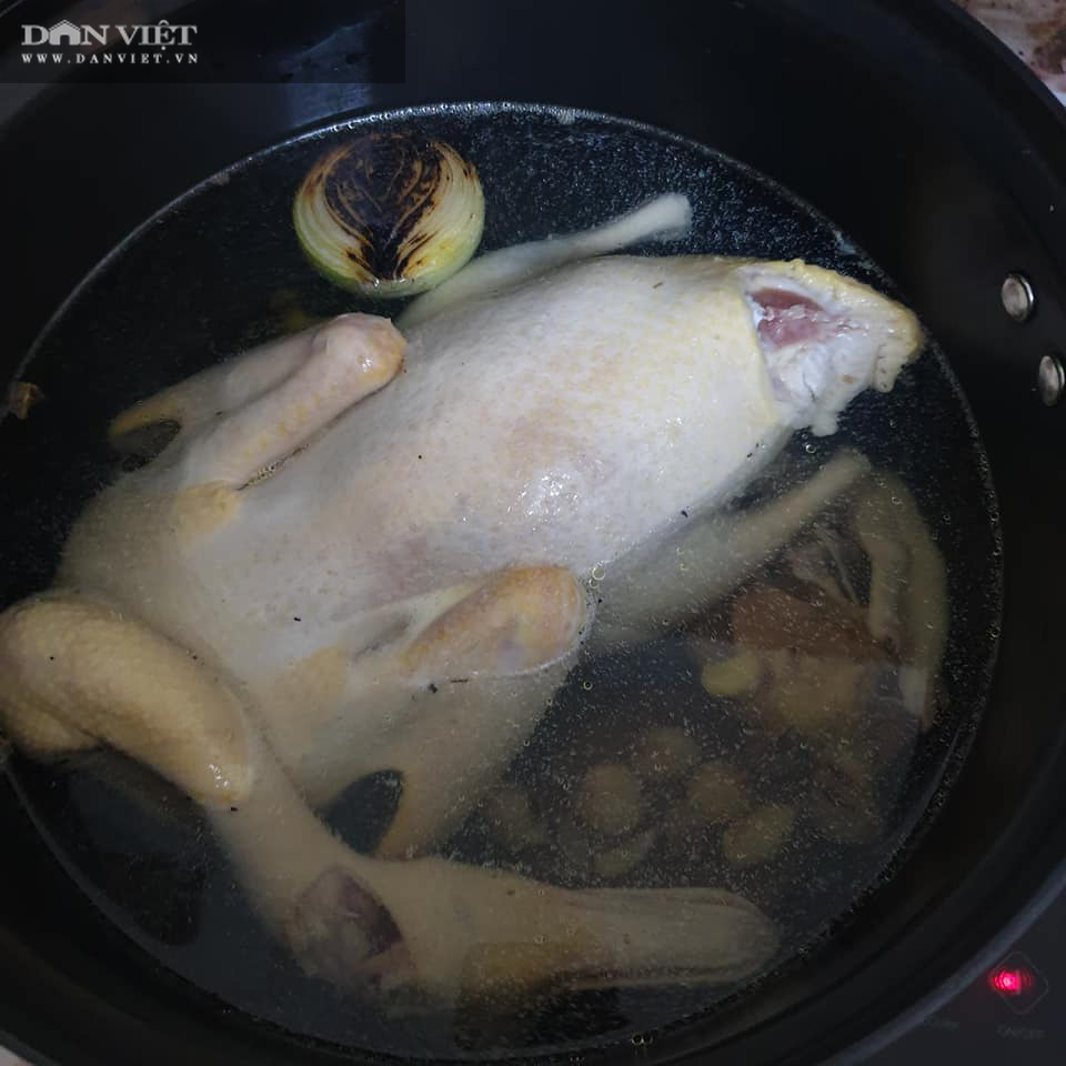 - Ngan luộc sôi thì vặn nhỏ lửa, hớt bọt cho nước trong, tầm 25- 30 phút là ngan chín, lấy đầu đũa hoặc xiên chọc vào phần đùi ngan, nếu ko ra nước đỏ là được. Ngan già thì luộc lâu hơn.