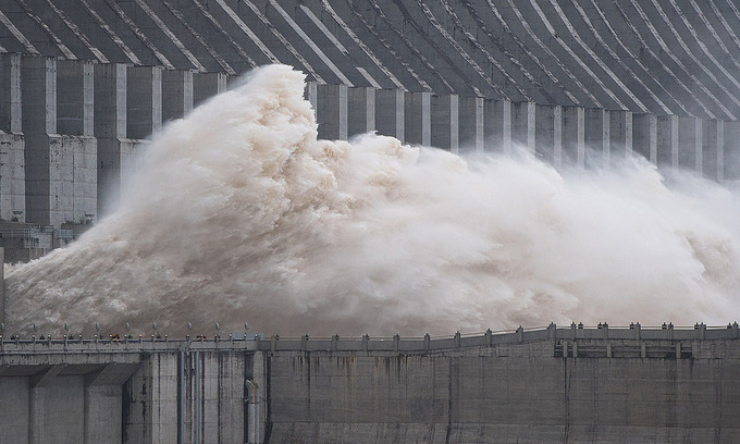 Đập Tam Hiệp ở tỉnh Hồ Bắc, Trung Quốc, xả lũ ngày 19/7. Ảnh: Xinhua.