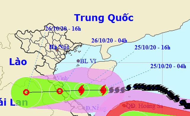 Theo Trung tâm Dự báo khí tượng thủy văn Quốc gia, hồi 4h ngày (25/10), vị trí tâm bão ở khoảng 17,6 độ Vĩ Bắc; 109,9 độ Kinh Đông, cách đất liền các tỉnh từ Hà Tĩnh đến Quảng Trị khoảng 330km về phía Đông. Sức gió mạnh nhất vùng gần tâm bão mạnh cấp 9 (75-90km/giờ), giật cấp 11. Bán kính gió mạnh từ cấp 6, giật từ cấp 8 trở lên khoảng 150km tính từ tâm bão.